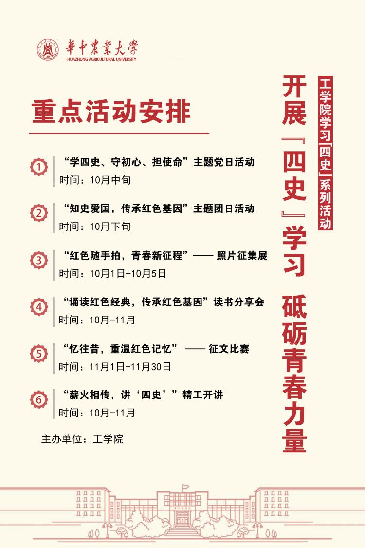 2.活动内容:以党史、新中国史、改革开放史、社会主义发展史为主题举办精工开讲,赞美“四史”发展艰辛历程中的英雄人物事迹,抒发“四史”学习感悟,表达对“四史”未来发展的美好憧憬。