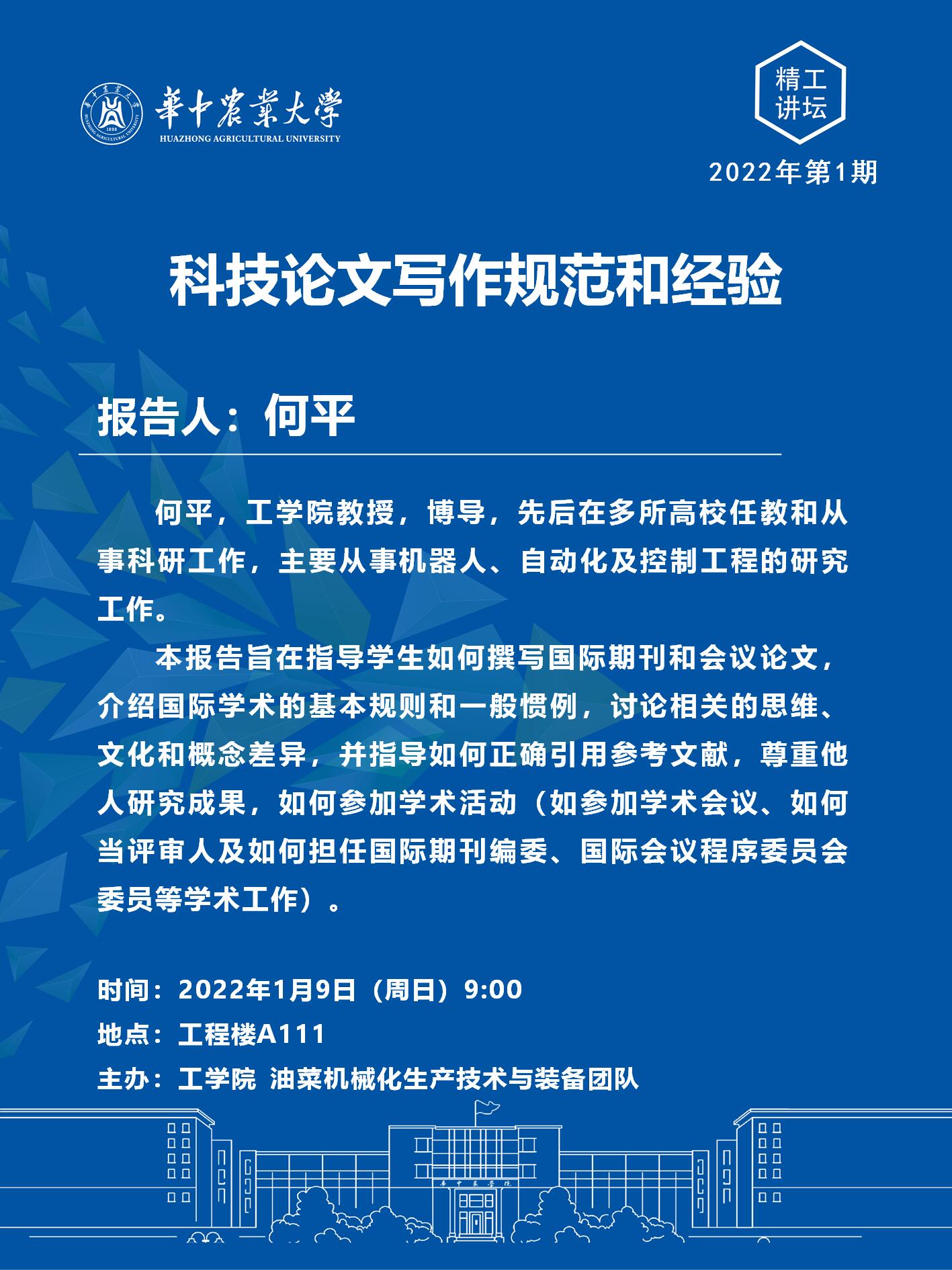 精工讲坛2022年第1期 | 科技论文写作规范和经验