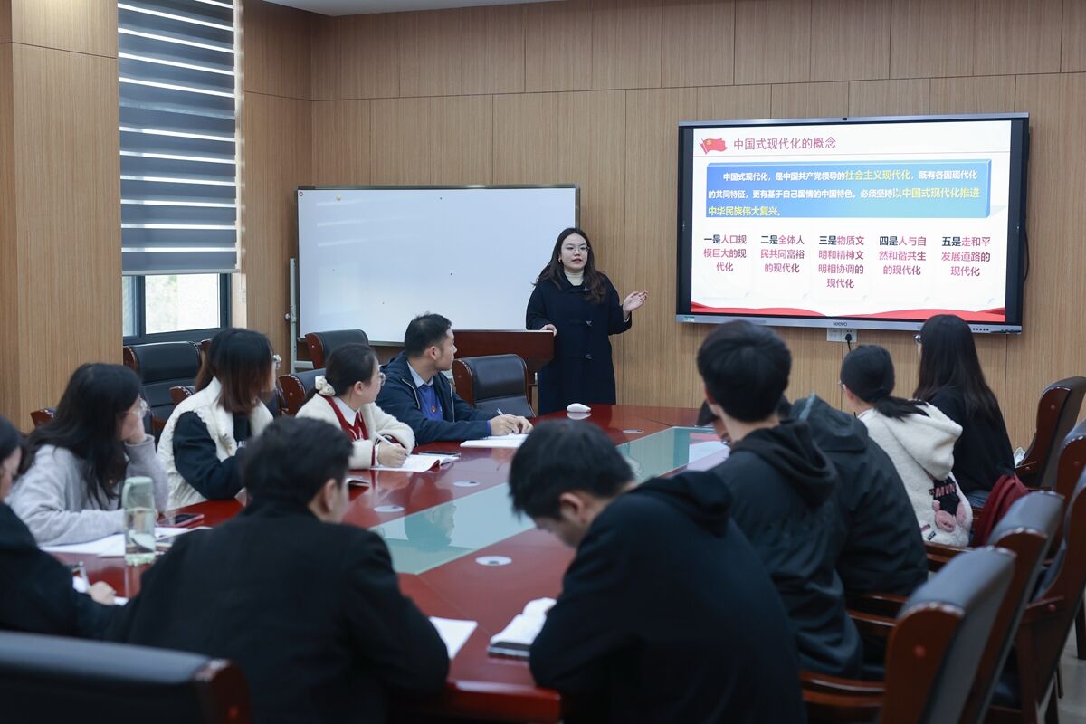 秦康怡以《秉承时代东风,走好中国道路——对中国式现代化的解读》为题进行宣讲。她从九个方面的本质要求、五个重大原则以及中国式现代化与西方式现代化的对比解释了中国式现代化的内涵,重点阐述了人口规模巨大、全体人民共同富裕、物质文明与精神文明相协调、人与自然和谐共生、走和平发展道路的中国式现代化这五大特征,从更好发展自身、更好造福世界两个方面介绍了中国式现代化的时代价值。她认为,青年是实现中国式现代化、中华民族伟大复兴的中国梦的主力军,作为新时代青年要以青春之“小我”,为实现中华民族伟大复兴添砖加瓦,在奋进新时代中国式现代化中留下自己的青春烙印。