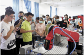 的车铣锻焊铸传统工艺训练器材老旧,大多是上个世纪的设备,并且工程训练落后于产业发展,存在形式碎片化、程式化等现实问题。对此,他积极挖掘身边可利用资源,将工业机器人引入教学,以智能制造及其生产管控为主线的综合训练,努力把工程教育与训练做成学校人才培养的一张名片,全方位服务学生创新创业与实践教学,以适应现代先进制造业对人才培养的需求。在这个过程中,他花费了大量的时间和精力去沟通协调与引进设备。当被问及对此项工作有何感想时,徐老师信心满满地说道:“打造面向全校、全受众、全过程的工程实践训练中心将是我们不懈的追求!”